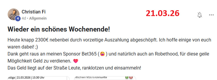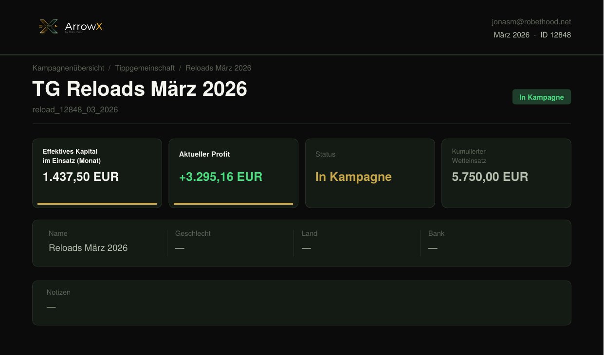 Für Einzelpersonen ist dieses Modell begrenzt. Deshalb skalieren wir über sogenannte Mitspieler – Menschen, die selbst nicht wetten, sich nicht einarbeiten wollen oder kein Kapital haben.